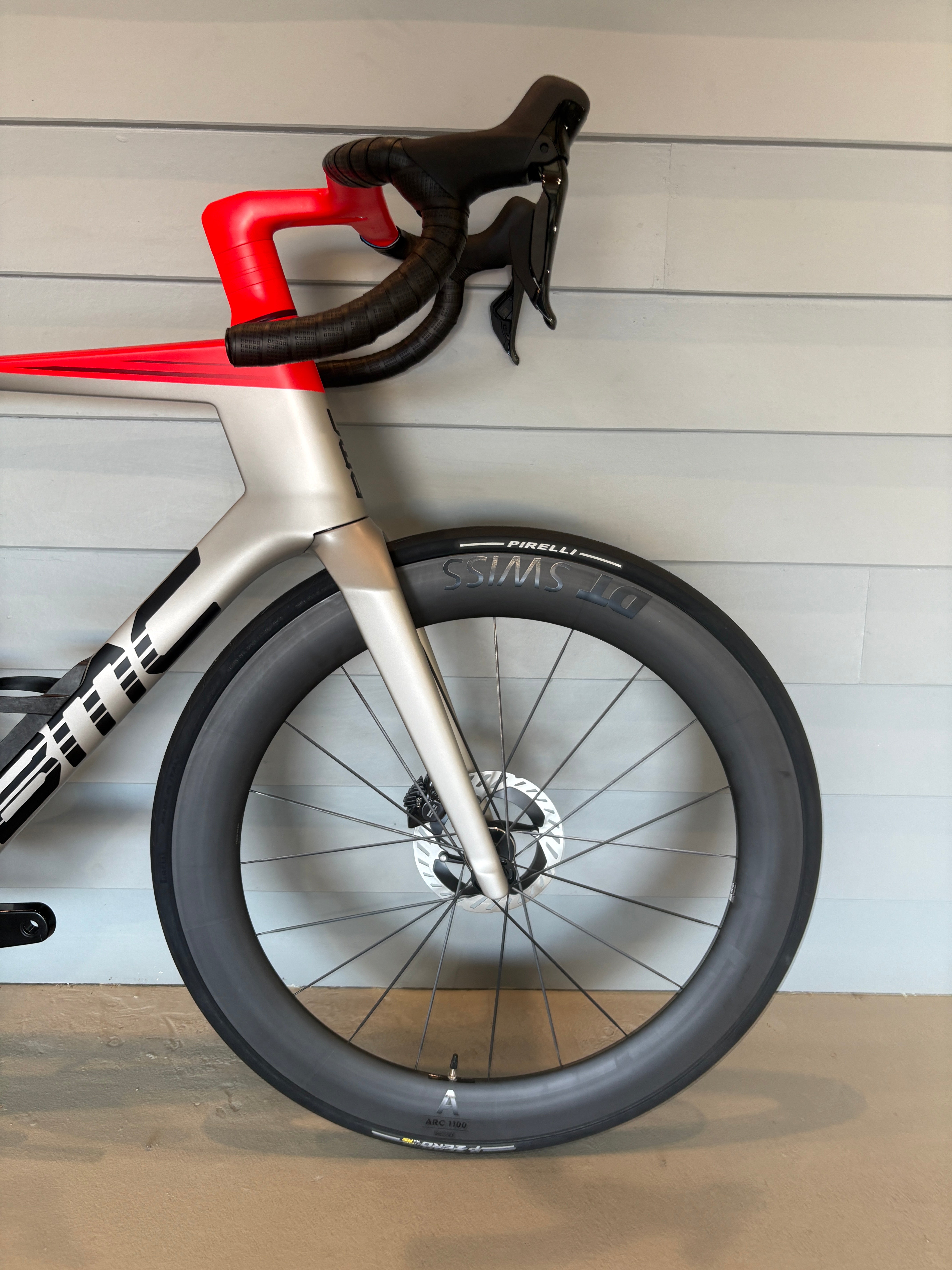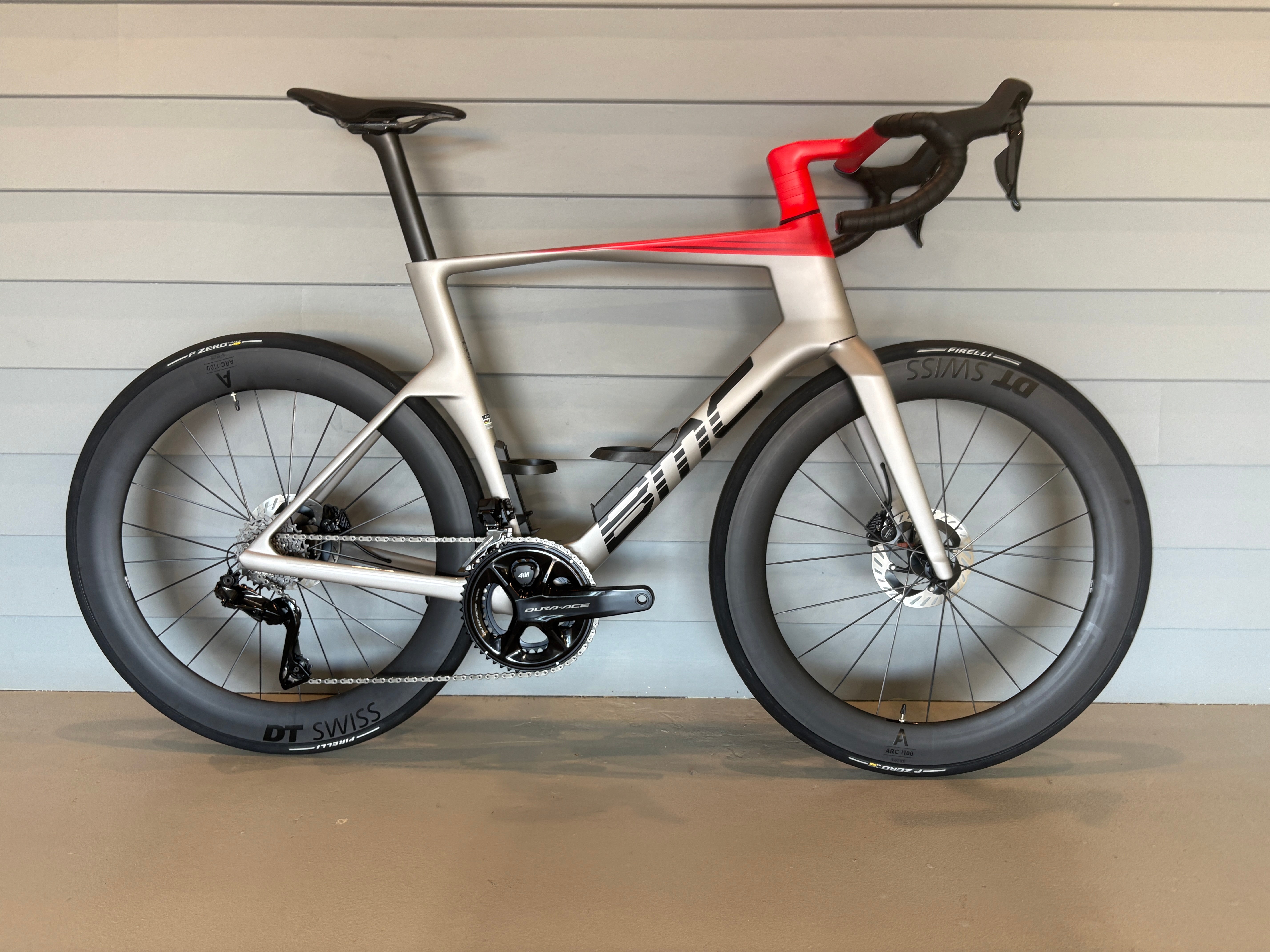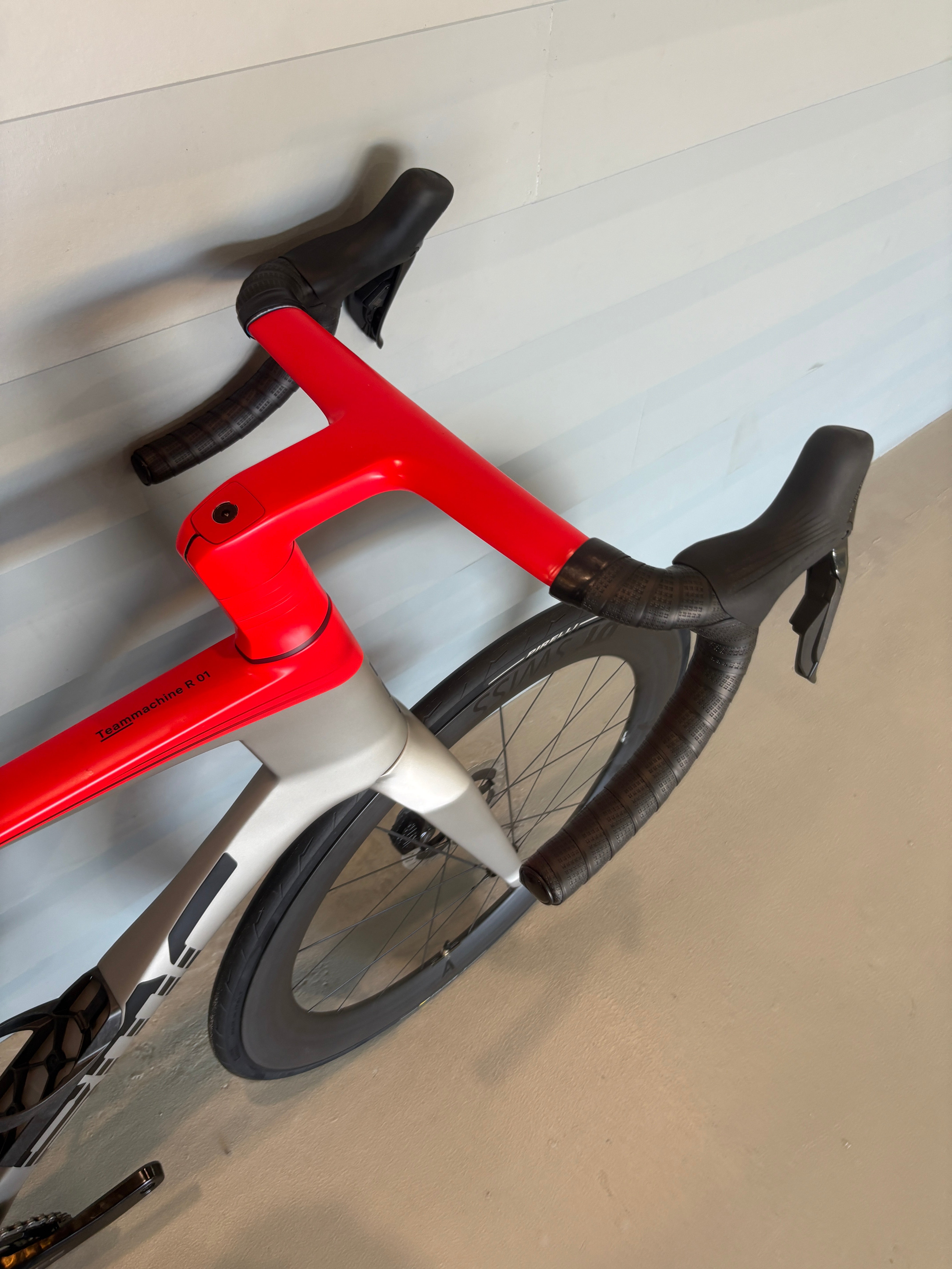 "Elevate Every Race. Born from the collaboration with Red Bull Advanced Technologies, the Teammachine R 01 brings professional race performance to every rider. Designed with high stiffness targets, low aero drag, and lightweight construction technics, it’s the fastest road bike ever designed by BMC. Specified with our aero and low stack ICS Aero cockpit, with SHIMANO Dura Ace - the highest quality groupset available -, fit with a powermeter and made even faster with the newest DT Swiss ARC 1100 DiCut 65mm wheels. Whether it’s a summit finish or a solo breakaway, this bike is built to deliver."