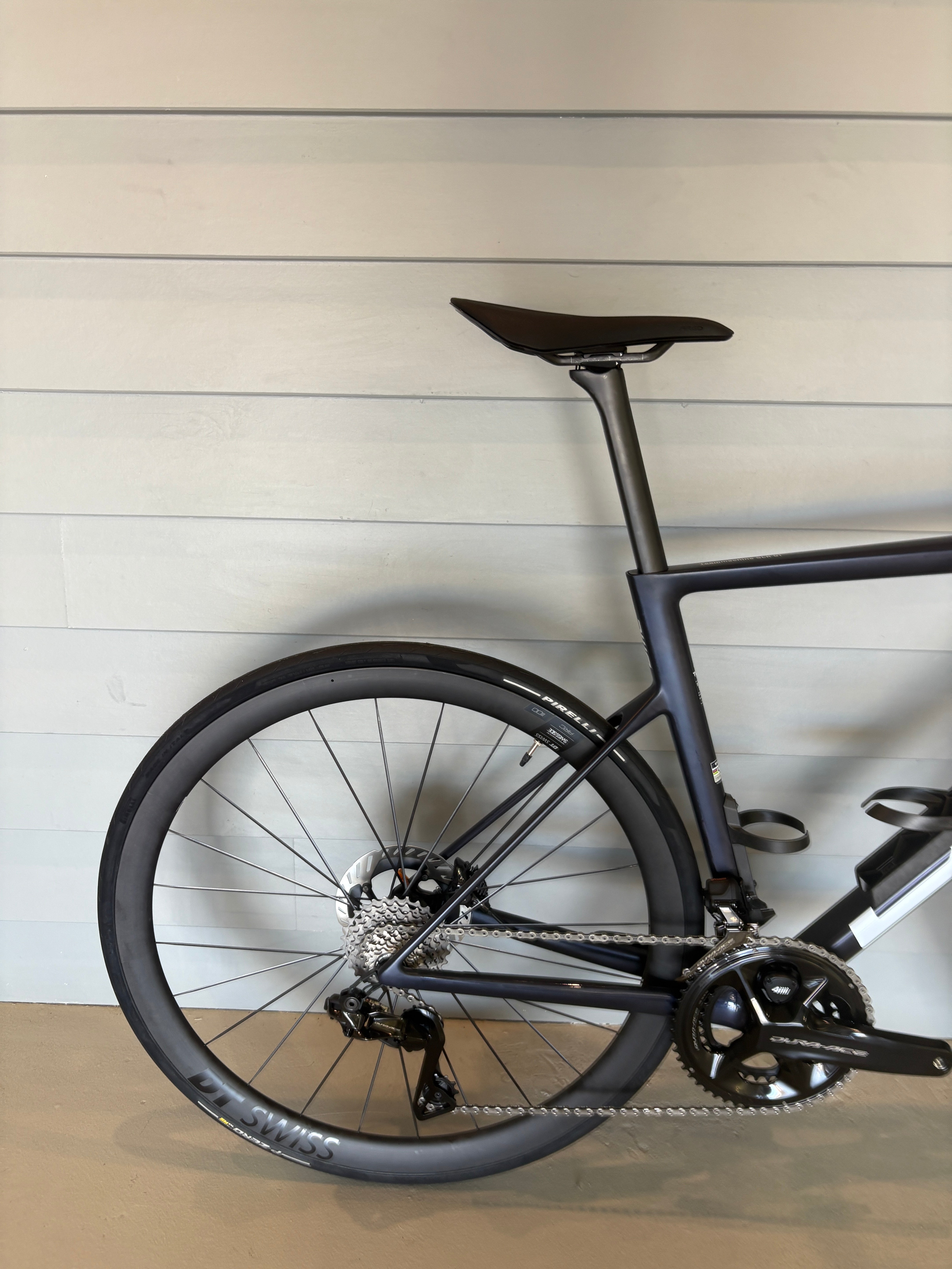 This is the top spec SLR01 as used by Team Tudor in the World Tour (they use SRAM). It's the new redesigned 2026 frameset which is 16% lighter. It has a big $$ carbon cockpit, Dura Ace with a power meter, top spec DT Swiss Wheels and it's around 6.5kg.......everything you'd expect from a pro level machine!! RRP is $17,999 so these wont last long!!